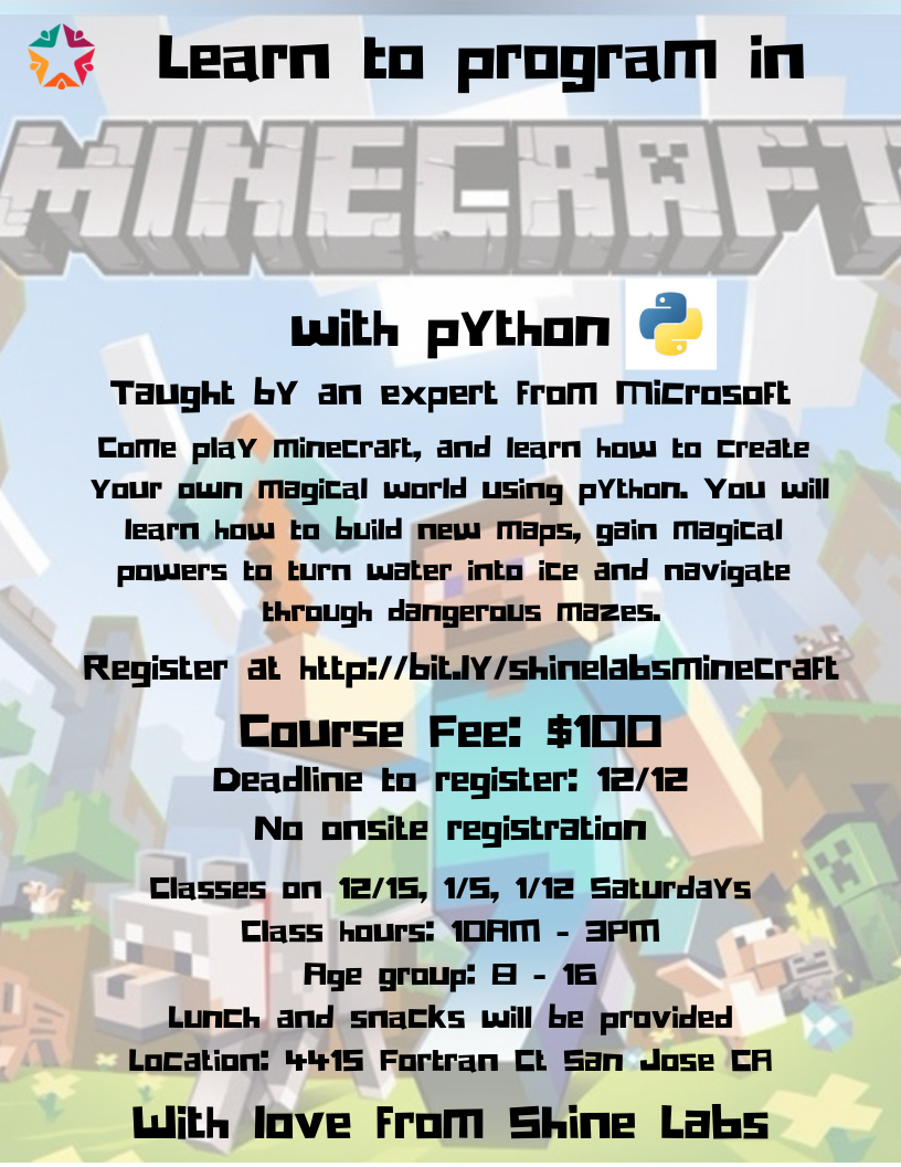 Register for the class at http://bit.ly/shinelabsminecraft